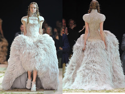 I was a great lover of Alexander McQueen's designs. Even though he was a troubled soul, his designs were pure genius. His love of fabric, art, textures, nature, color and the female body led him to be one of the top designers in a small amount of time. When Lee Alexander McQueen died a year ago, many people wondered if his designs would perish as well. As Sarah Burton unveiled her Spring and Fall 2011 collections under the McQueen name, the world knew that he lives on; they are every bit as magical and beautiful as one would expect. Many of her dresses would be perfect for a wedding; others are just simply...... perfect!
